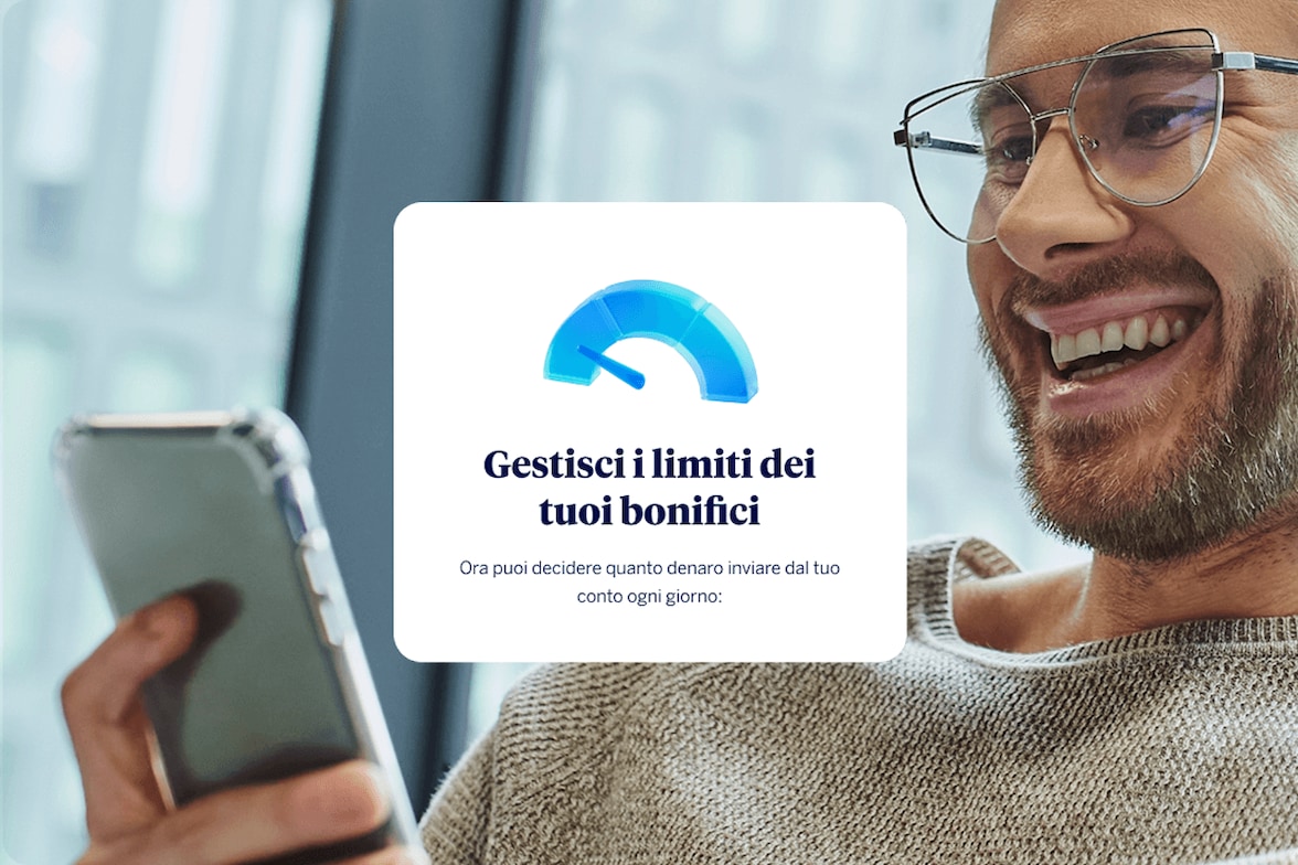 Da adesso puoi impostare i tuoi limiti giornalieri o per una singola operazione, e persino ridurli a zero quando non devi effettuare bonifici.