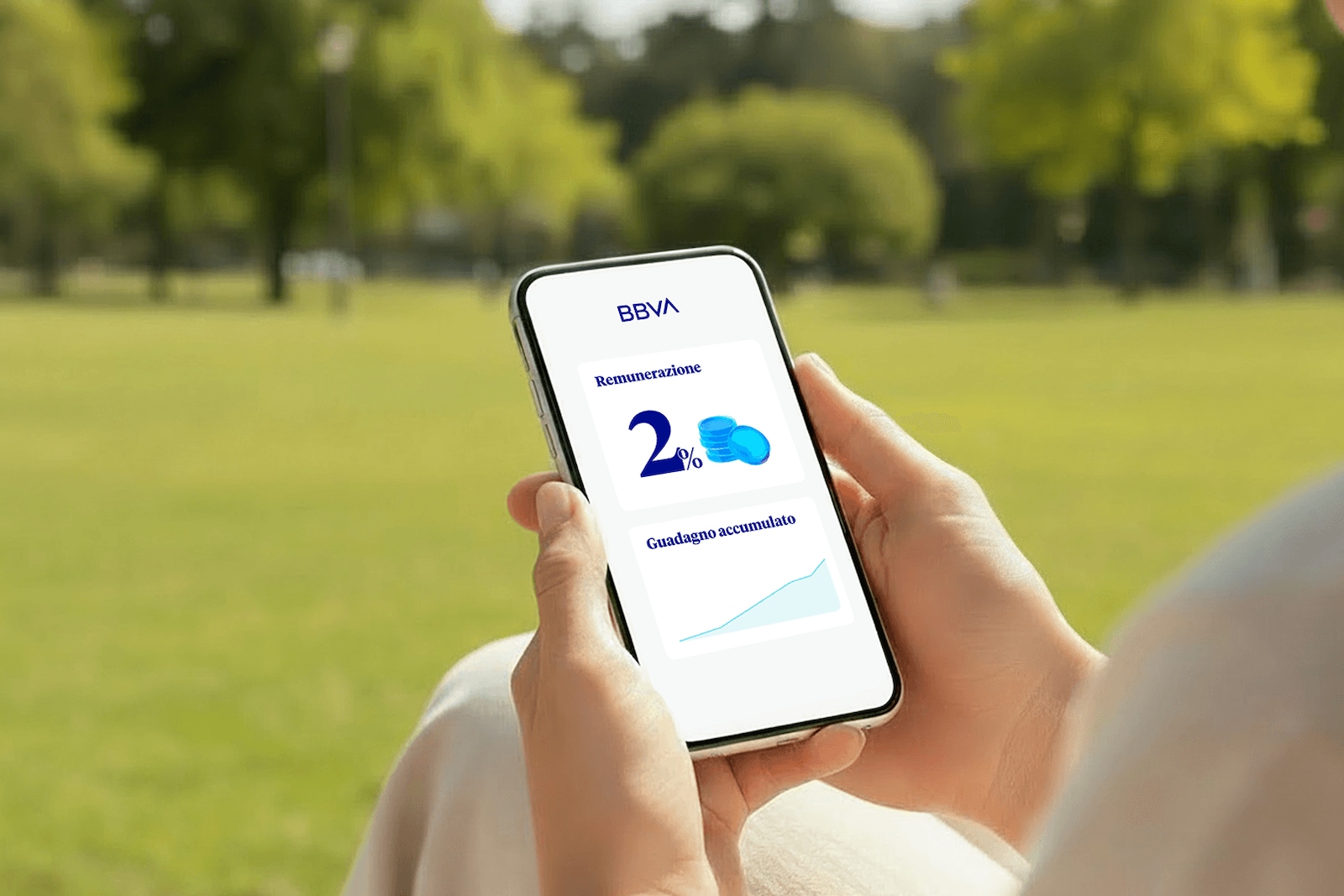 Dal 1° aprile e fino al 30 giugno 2026, puoi ottenere il 2% lordo ogni mese* con una solo di queste azioni: accreditando il tuo stipendio o la tua pensione, o spendendo almeno 1.000€ al mese con le tue Carte BBVA (debito e/o credito), o investendo almeno 15.000€ in fondi (esclusi ETF) con BBVA.