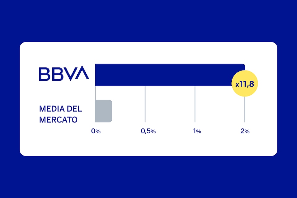 Dal 01/04/2026 al 30/06/2026 saranno riconosciuti interessi al tasso di interesse creditore annuo nominale lordo pari a 0,50%. In ciascun mese solare sarà possibile aumentare il tasso di remunerazione garantito semplicemente incrementando il saldo medio mensile del Conto BBVA: se il saldo medio mensile è pari o superiore a 10.000€ verrà applicato un tasso lordo dell'1,25%; se il saldo medio mensile è pari o superiore a 50.000€ verrà applicato un tasso lordo dell'1,50%. Inoltre, anche senza raggiungere soglie di saldo medio, sarà possibile ottenere una remunerazione ancora più vantaggiosa con un tasso del 2% se, nel corso del mese, si verifica almeno una delle seguenti condizioni: accredito dello stipendio o della pensione; acquisti complessivi con la Carta di Debito e/o Credito BBVA pari o superiori a 1.000€ nel mese; controvalore medio mensile investito in fondi (esclusi ETF) pari o superiore a 15.000€.